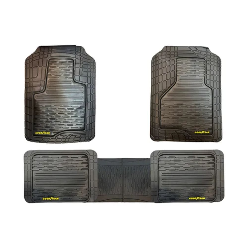 Mantené tu vehículo protegido con este set de cubre alfombras Goodyear, fabricadas en PVC de alta resistencia con diseño super pesado. Ofrecen máxima durabilidad y protección contra barro, agua, tierra y desgaste.