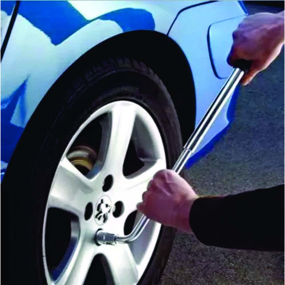 El diseño en L de la llave facilita su uso, proporcionando un agarre cómodo y un mayor control durante el uso. Además, su tamaño compacto permite un fácil almacenamiento en el maletero de tu vehículo, por lo que siempre estará a mano cuando la necesites.